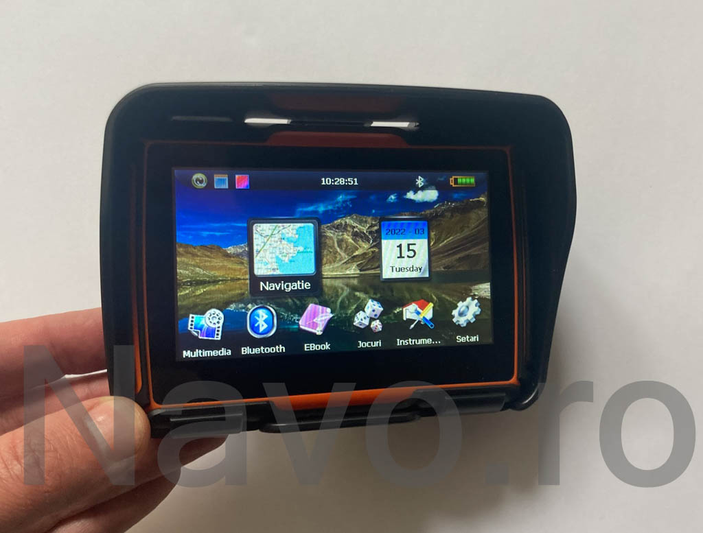 GPS model Navo Moto 03 - Navigatie auto de 4.3", cu 256MB RAM si 8GB memorie interna, special proiectata pentru motociclete si scootere