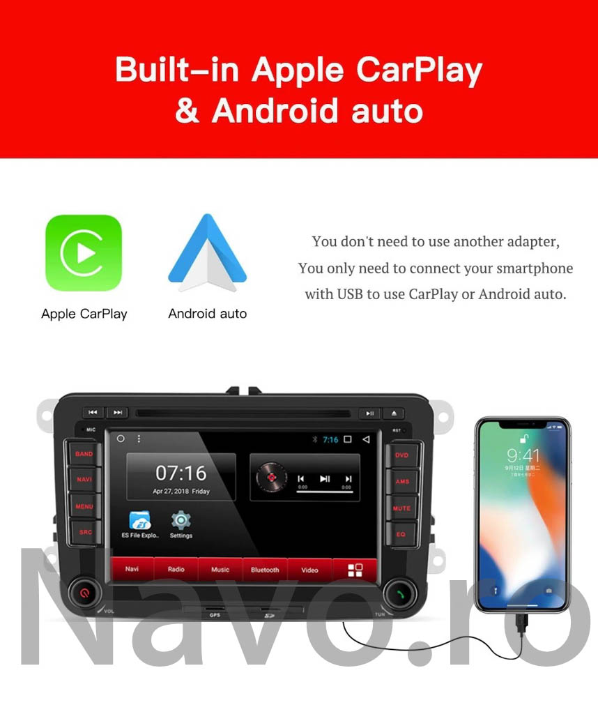 - suporta Carplay si Android Auto